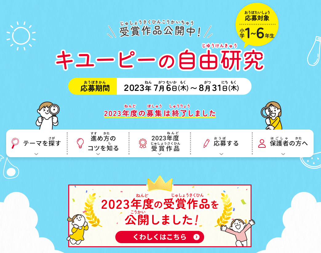 力作ぞろい!子どもたちの個性が光る作品多数。「キユーピーの自由研究」受賞作品が決定!