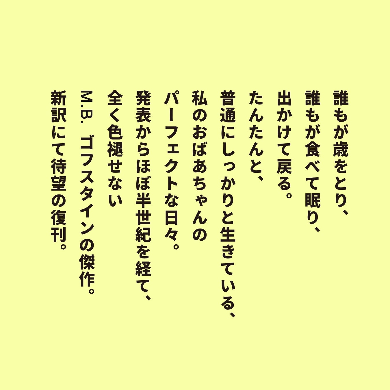 静かで強い、おばあちゃんの毎日。発表からほぼ半世紀を経て、全く色褪せないM.B.ゴフスタインの傑作。新訳にて待望の復刊。