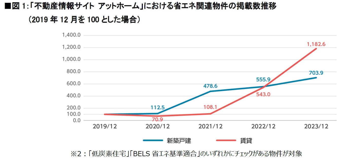 ~省エネ関連物件(※1)の掲載数は、新築戸建で約7倍、賃貸居住用で約12倍に~