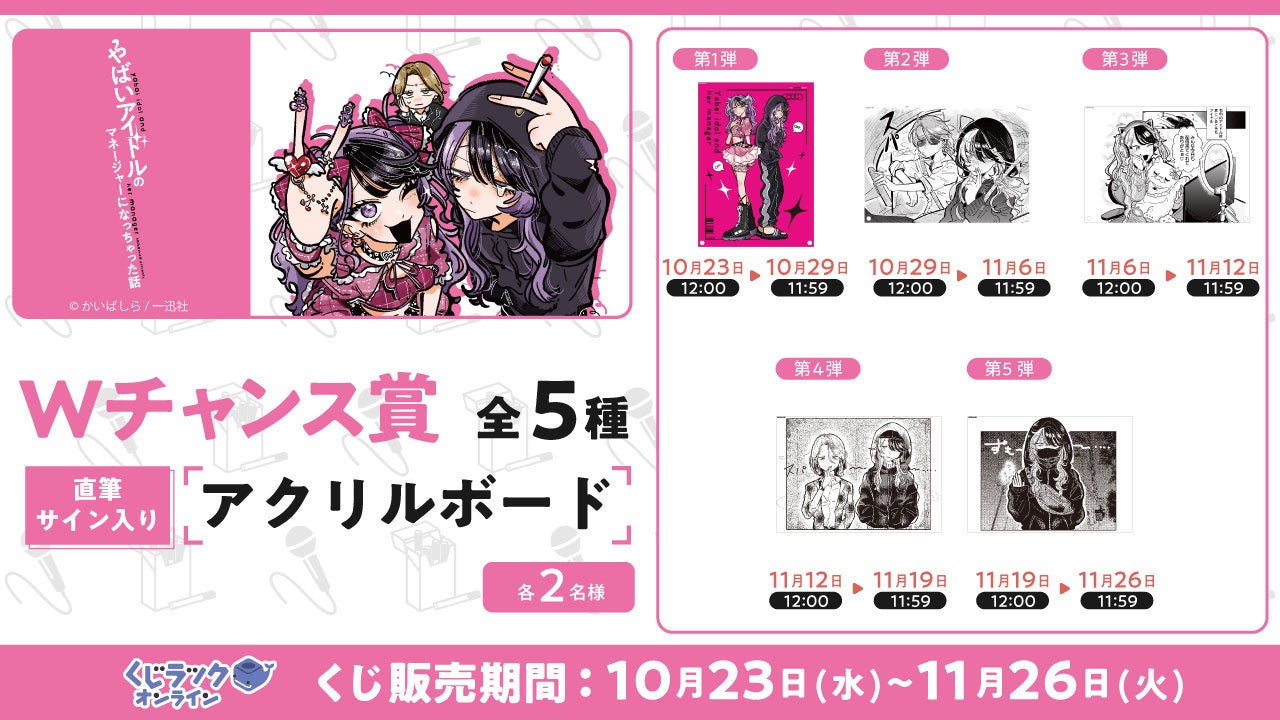 『やばいアイドルのマネージャーになっちゃった話』が「くじラックオンライン」に登場!豪華オリジナルグッズがハズレなしでゲットできる!2024年10月23日(水)より発売開始!
