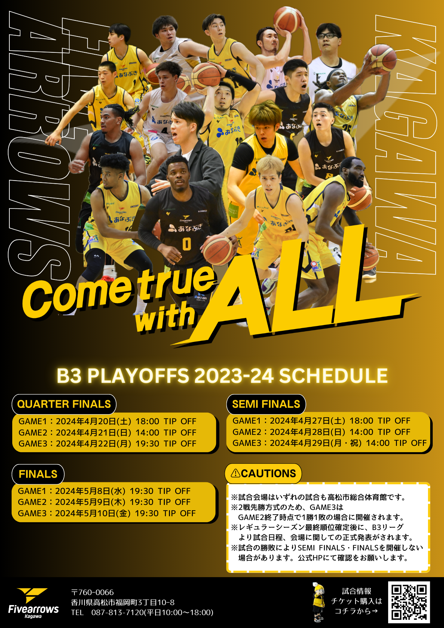 【香川ファイブアローズ】B3 PLAYOFFS 2023-24 試合時間決定のお知らせ