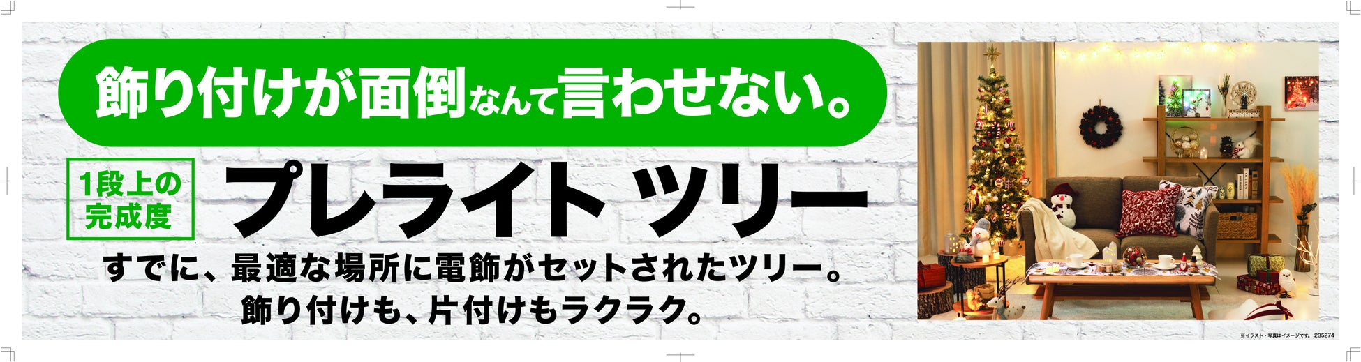 2023年ニトリのクリスマスは、「ツリーを飾る場所がない、飾りつけが面倒、装飾の電気代が気になる」といった、お客様のお悩みごとにしっかりと向きあい、解決することをテーマに商品を揃えました。多くの方に、心躍るクリスマスシーズンを楽しんでいただけるラインナップです。ぜひお近くのニトリ店舗またはニトリネットをご確認ください。