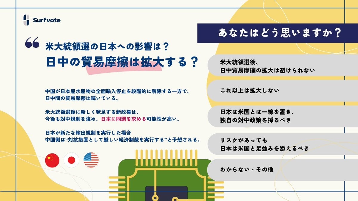 【米大統領選の日本への影響は?日中の貿易摩擦は拡大するのか?】Surfvoteで意見を募集しました!