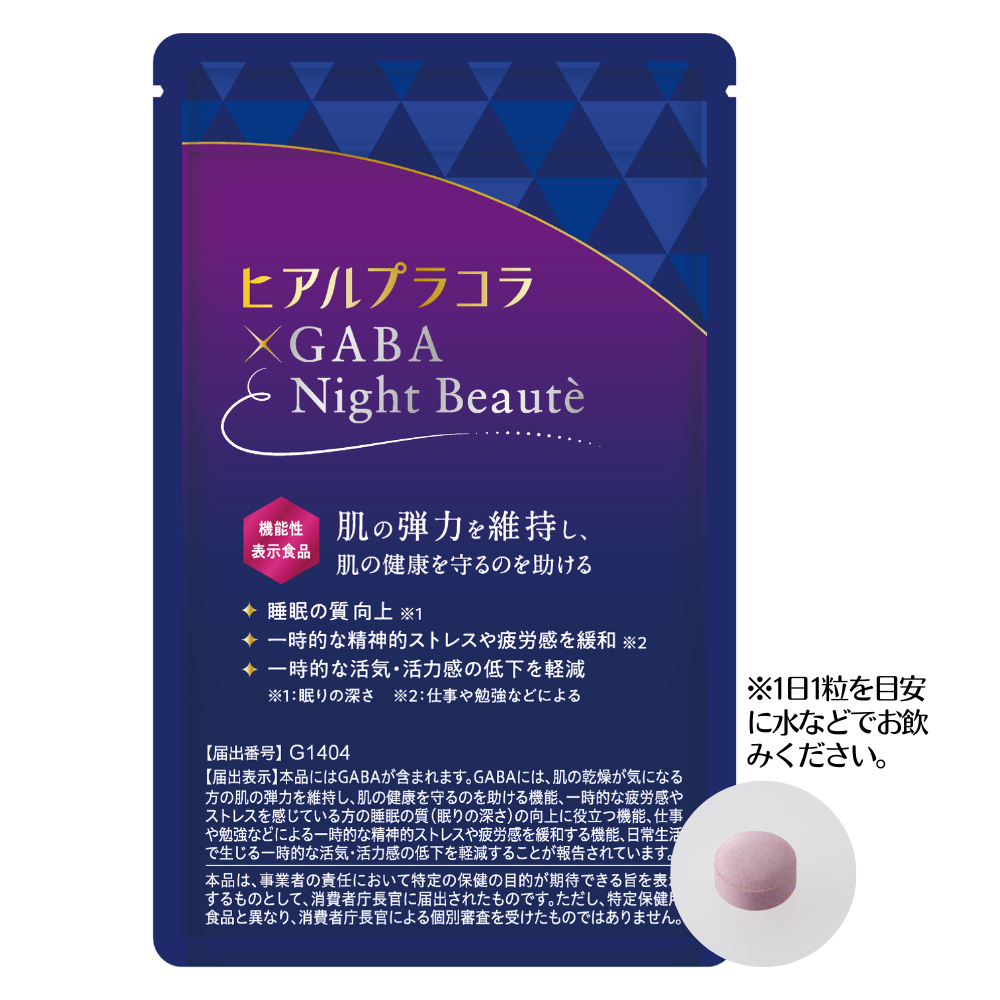 睡眠と肌の弾力維持の関係に着目!GABAと厳選成分を配合した機能性表示食品のサプリメント『ヒアルプラコラ ギャバ ナイトボーテ』を新発売!