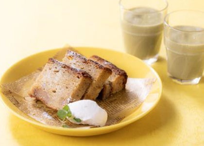 朝食にて提供していた「明日葉豆乳スムージー」のバナナを「もったいないバナナ」に変更、また「もったいないバナナ」を活用した新メニューとして「バナナキャラメルケーキ」をご提供いたします(提供時間8:00~無くなり次第終了)。しっとりとした食感と、バナナの風味豊な味が朝の時間にピッタリです。今後も「もったいないバナナ」を使用した新メニューを提供予定です。美味しく食品ロスの削減に貢献できる新メニューをこの機会に是非ご賞味ください。