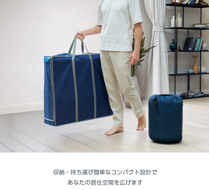 折りたたみ可能な軽量設計により、使用しないときは簡単に収納できます。省スペース設計で、狭いお部屋やクローゼットにもスッキリ収まるのが魅力です。また、軽量かつ持ち運びやすいデザインなので、自宅での使用はもちろん、アウトドア、来客用、非常時の備えとしても幅広く利用できます。