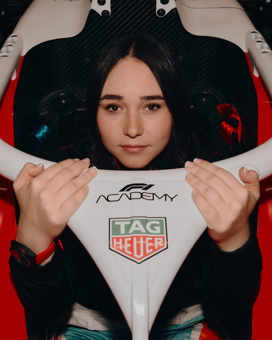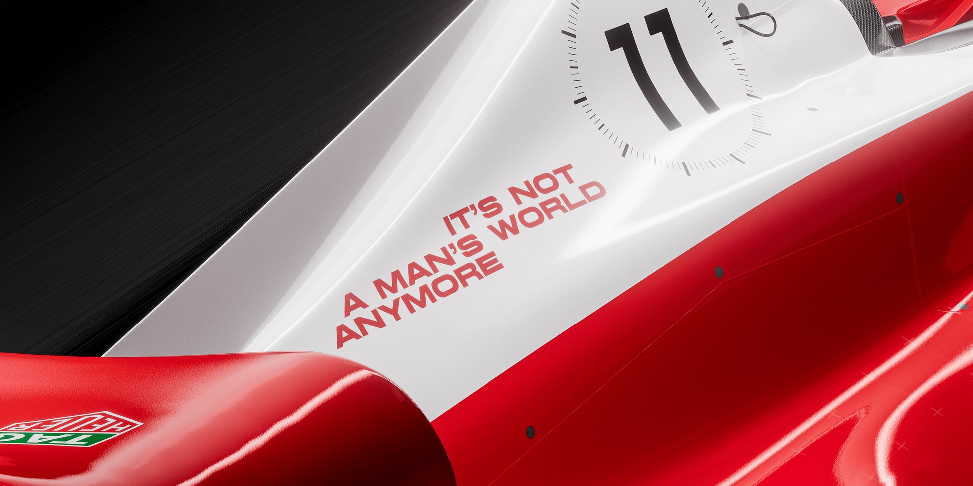 アイヴァがハンドルを握ることになる「TAG Heuer operated by Hitech」のマシンとレーシングスーツは、タグ・ホイヤーが誇る高い精度とヘリテージを象徴する、レッド、ホワイト、ブラックのアイコニックカラーを纏っています。また、マシンのカバーには「IT'S NOT A MAN'S WORLD ANYMORE (もう男性だけの世界じゃない)」のフレーズが書かれ、女性の才能を育て、力を与えるというタグ・ホイヤーのコミットメントが表明されています。