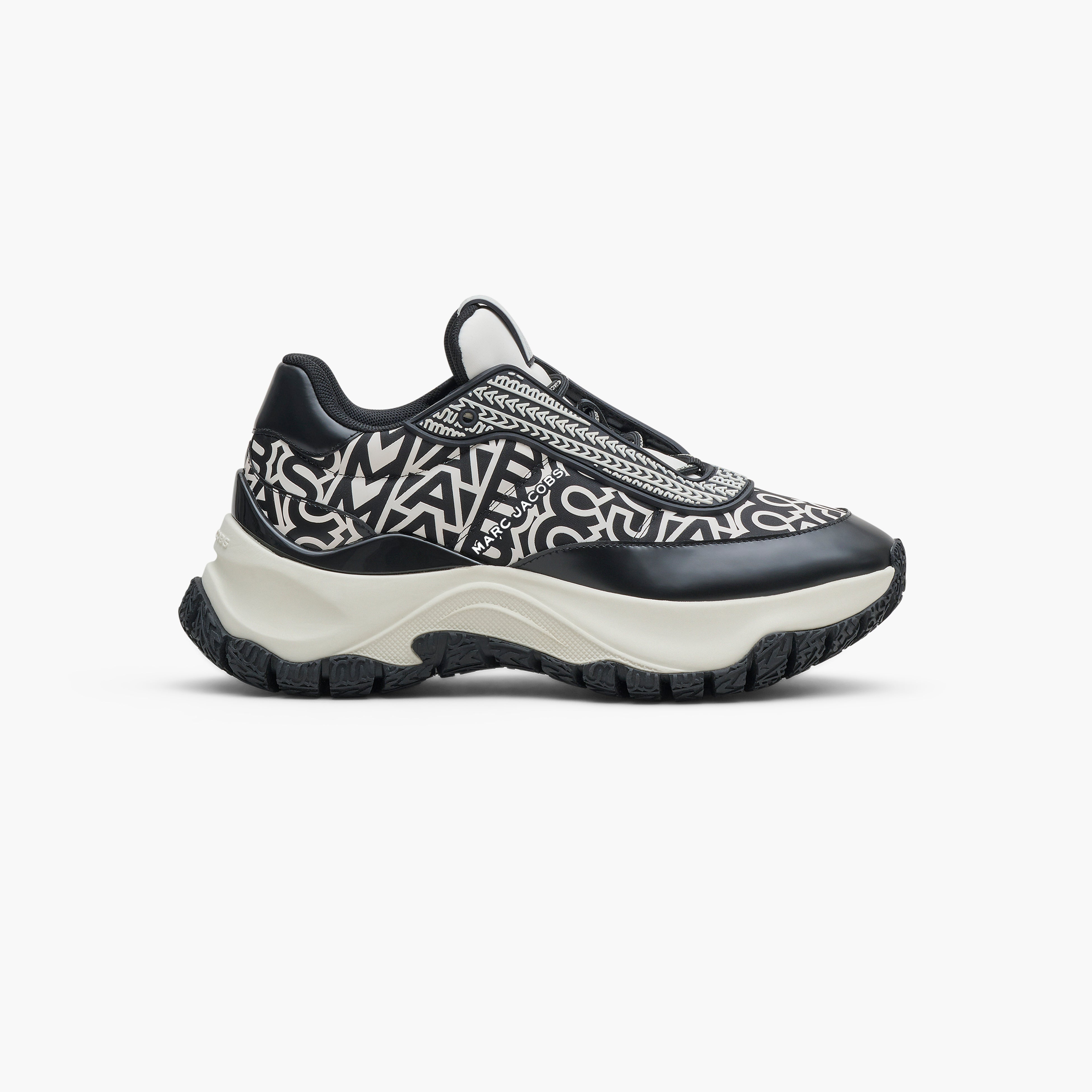 「THE LAZY RUNNER(ザ レイジー ランナー)」は、“怠け者のランナー”という意味の、マークらしい皮肉をこめたアイコニックなスニーカー。軽量でいて、クッション性や履き心地にも優れた、ランニングシューズ顔負けのアイテムです。アッパーには汚れに強いナイロン素材にラバーのモノグラムプリントを施し、ソールの底部分には全面モノグラムエンボスを採用。ユニセックスなデザインで、サイズは35から41まで展開。カラーはブラック/イエロー、ホワイト/ブラックの2色展開のほか、「THE METALLIC LAZY RUNNER(ザ メタリック レイジー ランナー)」からはシーズナルカラーのシルバーの1色展開、全面モノグラムプリントを施した「THE MONOGRAM LAZY RUNNER(ザ モノグラム レイジー ランナー)」からはブラック/ホワイト、グリーンマルチ、パープルマルチの3色を展開します。