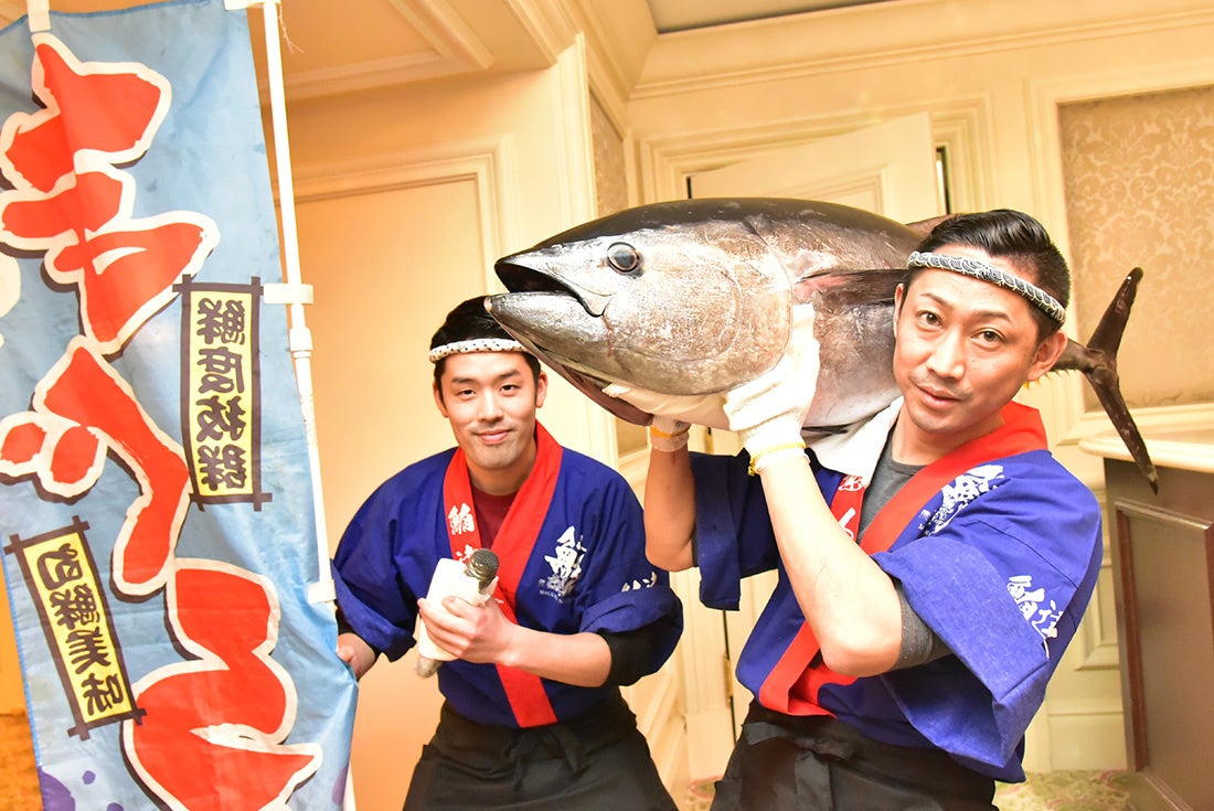 「鮪達人」によるマグロ解体ショーパフォーマンス。