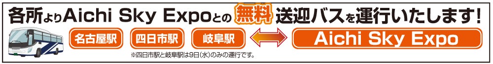 名古屋駅・四日市駅・岐阜駅よりAichi Sky Expoとの無料送迎バスを運行いたします!