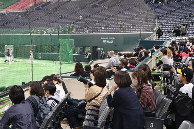 ・スタンド席から選手の練習を見学 ・練習後、フィールド内および3塁ベンチを自由に見学可能 ・ガイドなしで写真撮影をお楽しみいただけます |