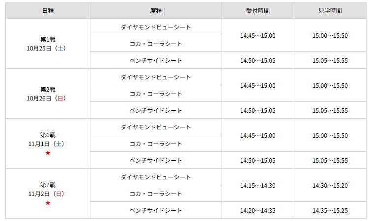 日本シリーズ直前限定!特別企画「練習見学+フリー見学コース」 購入サイトはこちら