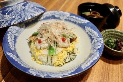 瀬戸内の穴子と鱧をそれぞれにあった調理で二色丼にしました。穴子はふっくらと煮穴子で。鱧はさっぱりと白煮にしております。お米は広島県産のコシヒカリを使用しております。