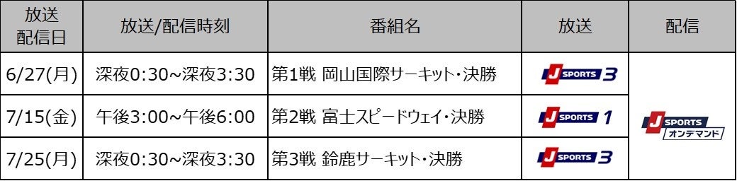 ※放送/配信内容は変更となる可能性がございます。再放送などの詳しい情報はSUPER GTの番組サイトをご確認ください。https://www.jsports.co.jp/motor/supergt/
