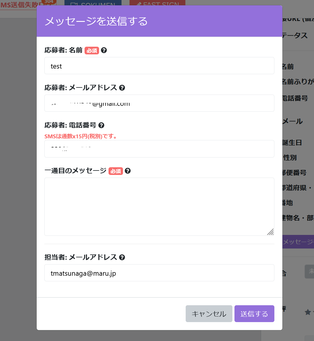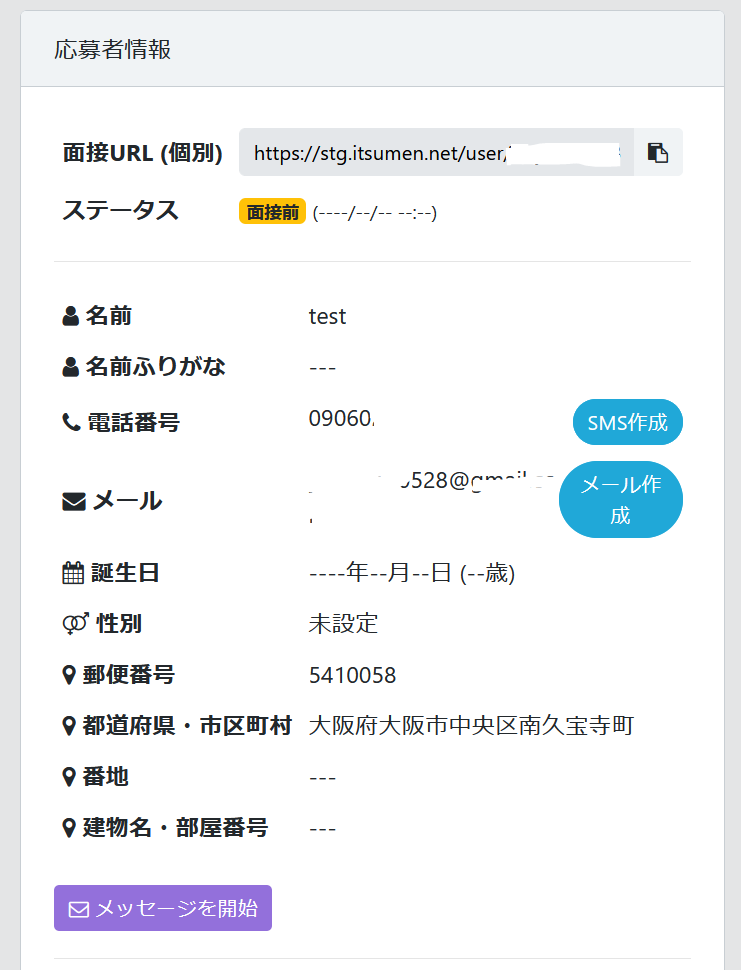 ※応募者詳細画面内にメッセージ開始ボタンを新設