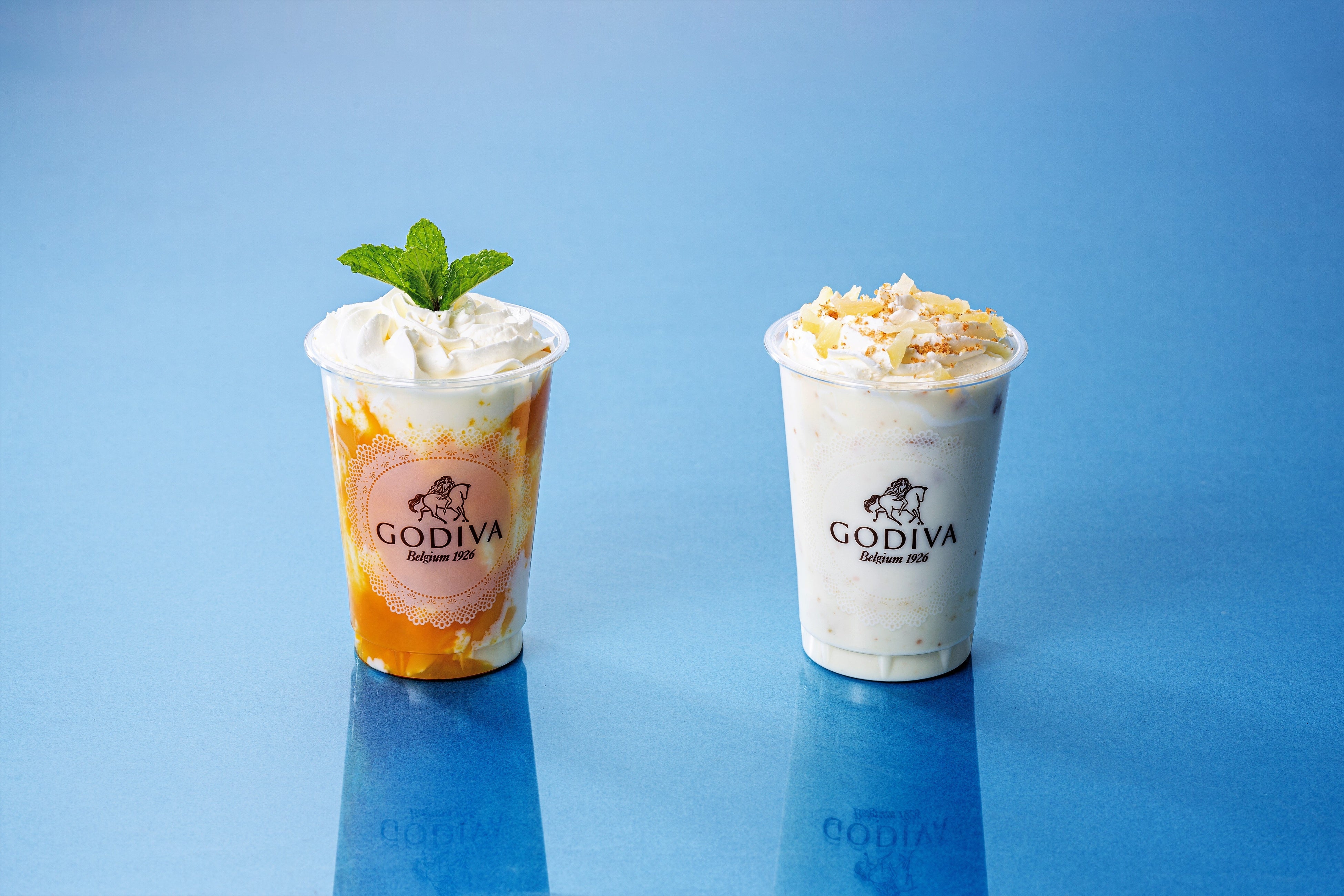 GODIVA caféより、ケーキのような濃厚な味わいのデザートドリンクから新フレーバー2種類が登場!「GODIVAデザートドリンク マンゴープリン」「GODIVAデザートドリンク レアチーズケーキ」
