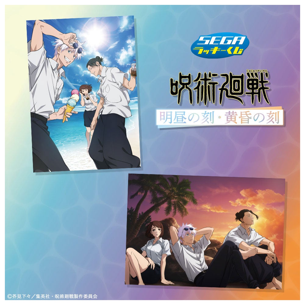 昼間と夕暮れの海辺をイメージした2種の描きおろしイラスト!セガ ラッキーくじ「呪術廻戦 明昼の刻・黄昏の刻」 発売