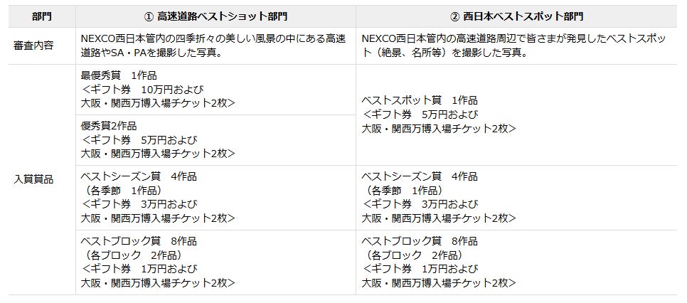 高速道路ベストショット部門、および西日本ベストスポット部門にご応募いただいた607作品から、厳正なる審査を経て、以下のとおり入賞作品が決定しました。入賞者のみなさま、おめでとうございます。