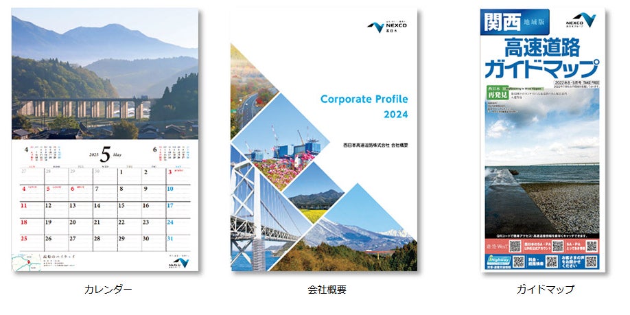 弊社カレンダー、「会社概要」冊子、SA等で配布する高速道路ガイドマップの表紙等の出版物やNEX