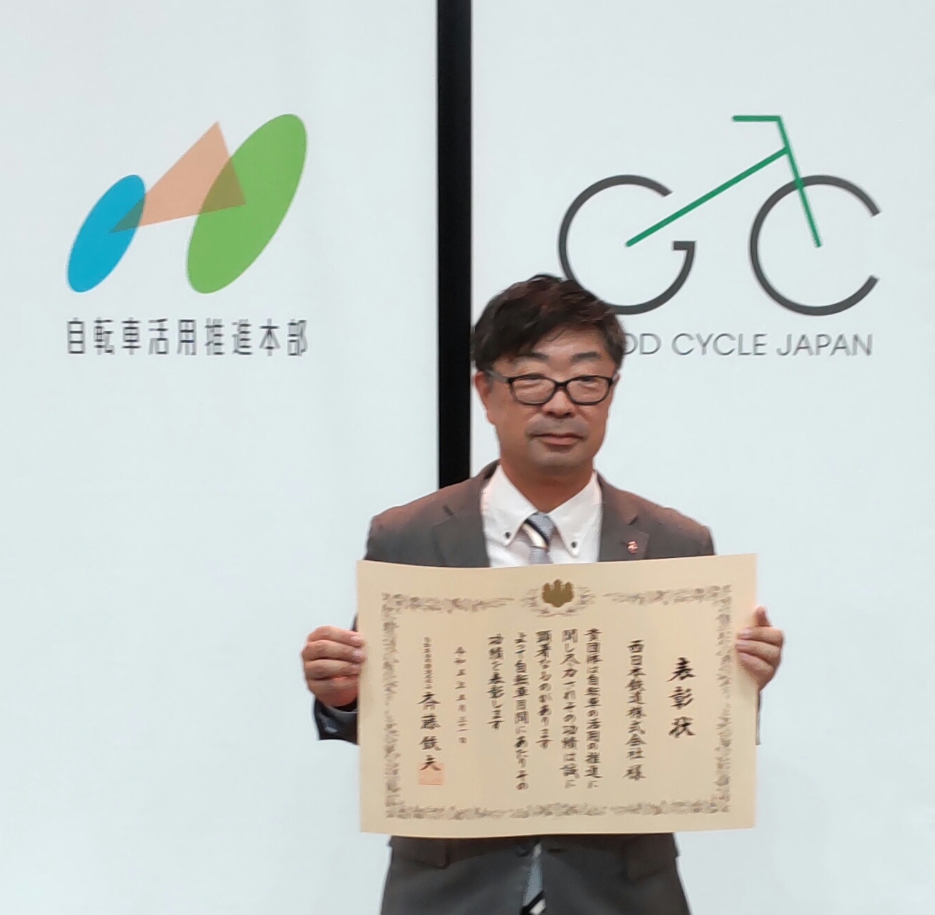 自転車活用推進功績者表彰を受賞できましたことは大変光栄です。当社鉄道の本線を使って取り組むことで、沿線全域に渡るサイクルツーリズムを推進し、観光需要を喚起させ地域の新たな賑わい創出に貢献できるよう取り組んでまいります。
