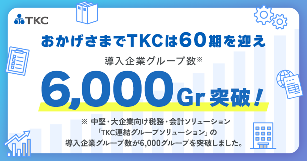株式会社TKC(本社:栃木県宇都宮市、代表取締役社長:飯塚真規)では、中堅・大企業向けに、グループ通算、単体納税、電子申告、税効果会計、連結決算、個別決算、固定資産管理、海外子会社管理などを網羅する「TKC連結グループソリューション」を提供しています。このたび、TKC連結グループソリューションを導入する企業グループ数が6,000グループを突破しましたので、お知らせします。