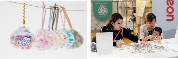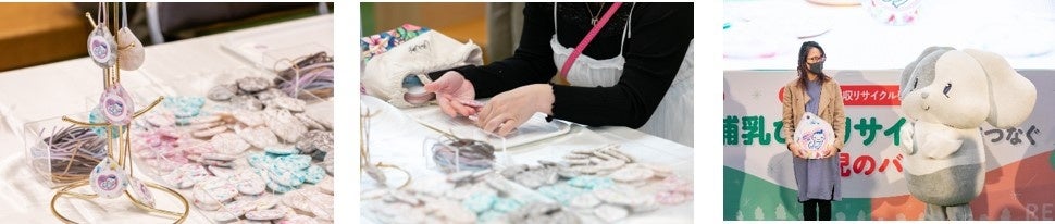 イベントでは、哺乳器に関するご家族の悩みとリサイクル課題が説明された他、実際に哺乳器を使用していたご家族へ卒乳証書の授与や、マタニティの方へ回収した哺乳器パーツの一部を原料に使ったマタニティマークの贈呈が行われました。その後のワークショップではオリジナルのマタニティマーク作りを、ご来場のマタニティの方やそのご家族に体験していただきました。