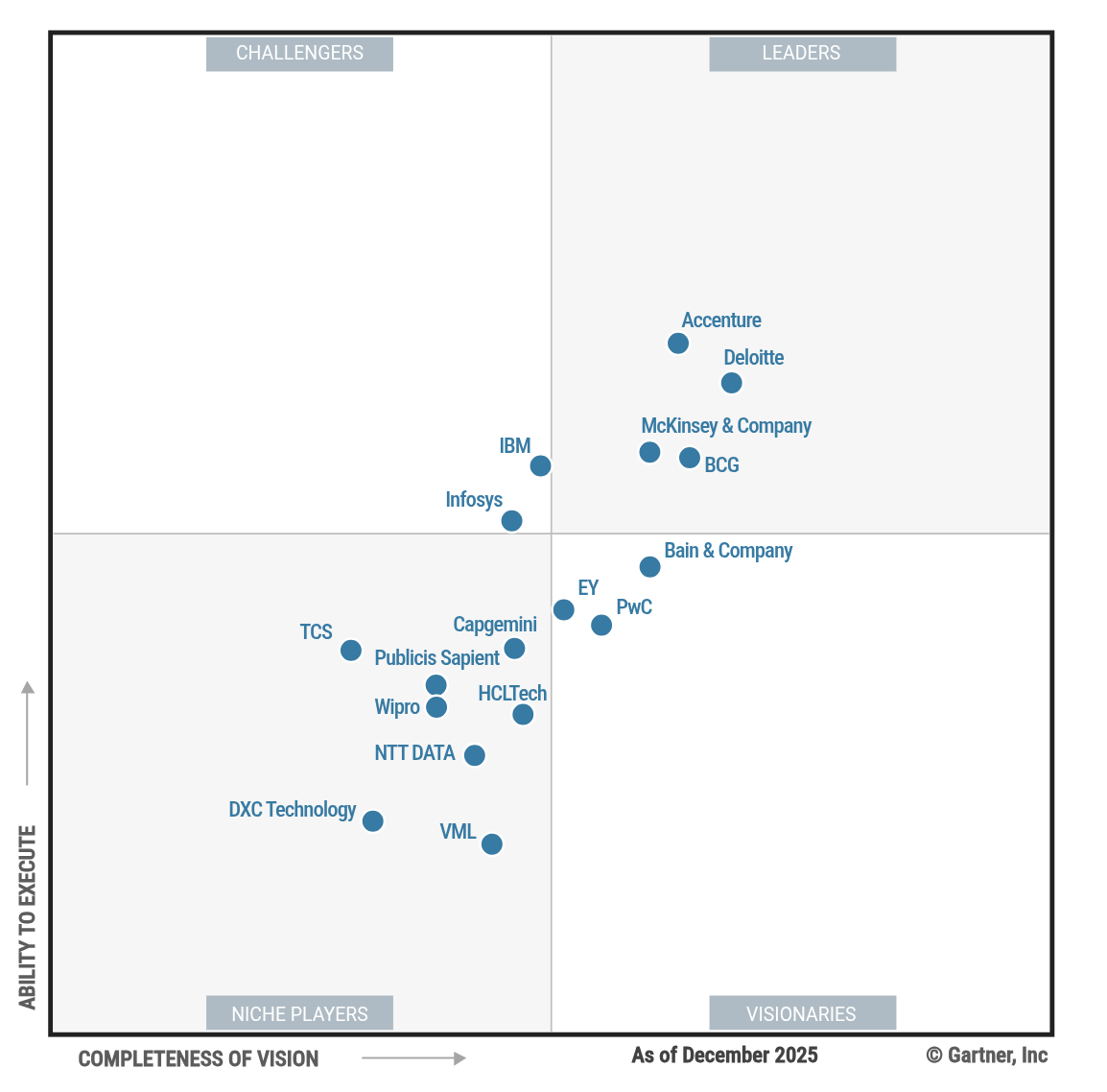 Gartner® Magic Quadrant™ for Digital Technology and Business Consulting Services by: Sundar Viswanathan, Tom Sieber, Mark Whitehouse, Tsuyoshi Ebina, Luis Pinto, Matthew Brown, Alan Stanley, January 12, 2026