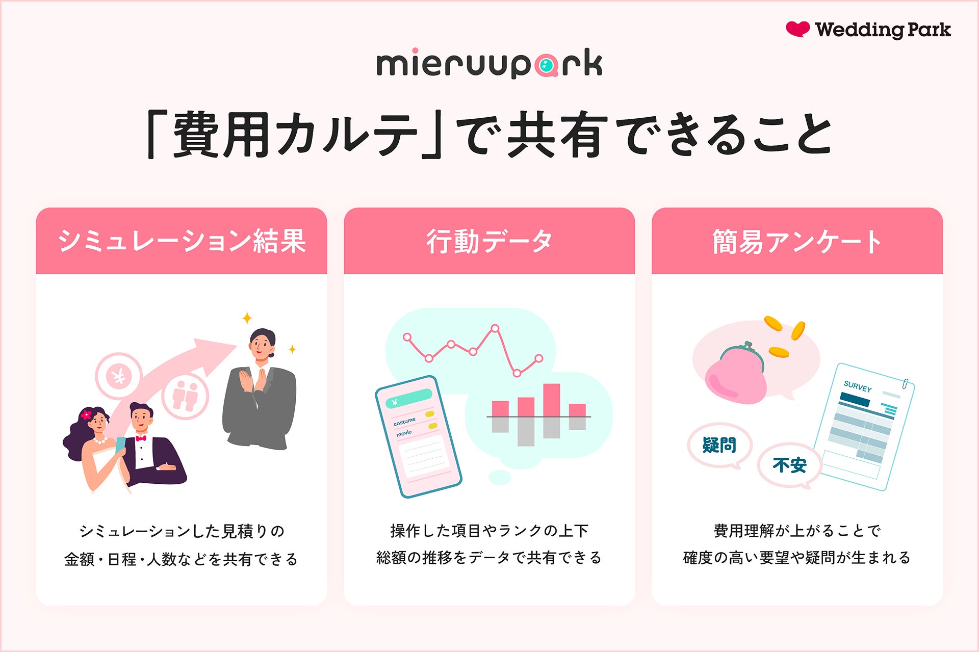 株式会社ウエディングパーク(本社:東京都港区、代表取締役社長:日紫喜誠吾)は、結婚式費用のリアルなシミュレーションができるサービス「mieruupark(ミエルーパーク)」において、カップルが見積りをシミュレーションした行動データから「費用の本音」が事前にわかる「費用カルテ」を2026年2月9日(月)よりリリースいたします。