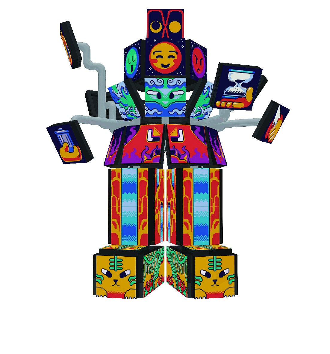 展覧会場の中や外に、オニとカッパや十二支、仏教神道、妖怪変化など彼が生み出すキャラクターが集結し、ストーリーを持つコンテンポラリーアート作品として、会場にPCを設置し、ゲームとして実際にプレイして遊ぶことができます。