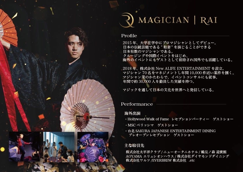 プロマジシャンとして数多くのイベント登壇やコンサルタント、またマジックを活用したコミュニケーション研修やワークショップを、企業や大学・地域団体向けに多数の実績をもつスペシャリスト。