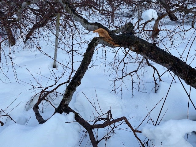 大雪により、りんごの枝が折れたり、主幹が避ける被害が発生しました。