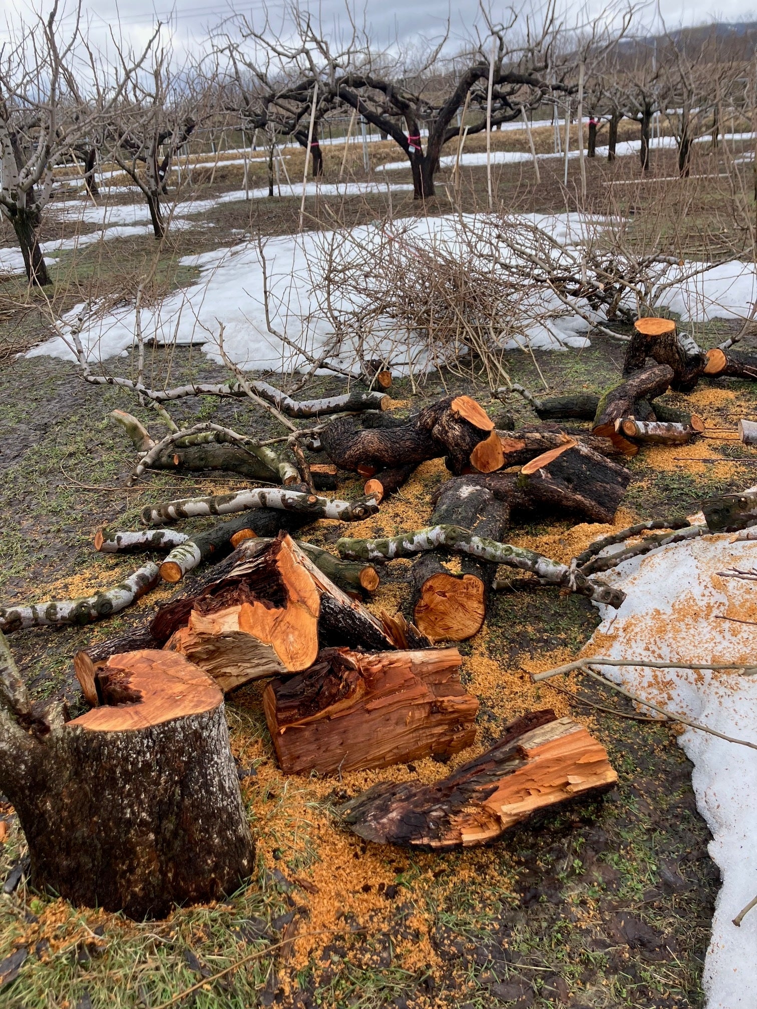 何十年とかけて育ててきたりんごの木が傷つきましたが、再生に向けて一歩ずつ取り組んでいます。