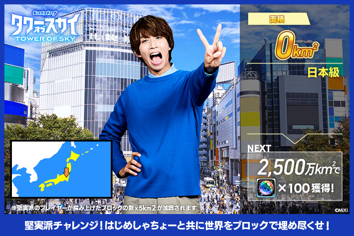 【内容】 「タワスカ」で使ったブロックの面積で、はじめしゃちょーさんの土地を拡大しよう