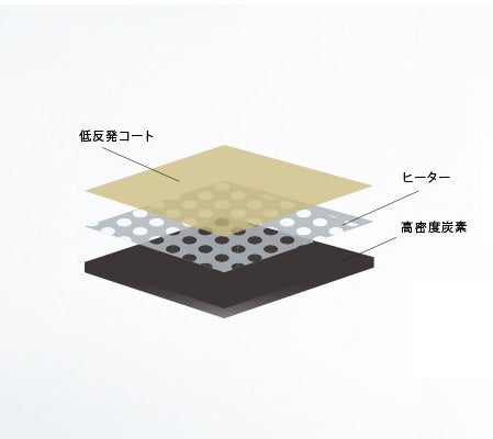 ■低反発コート」「ヒーター」「高密度炭素」の三層構造