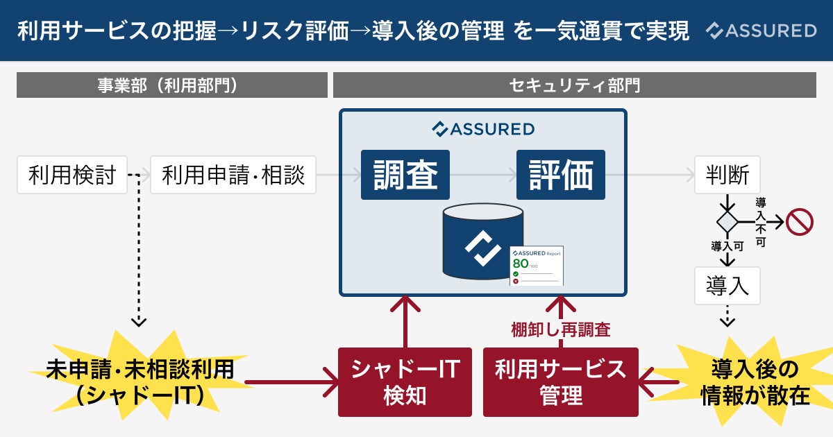 上記機能の追加により、Assuredを活用することで、利用サービスの把握からリスク評価、導入後の管理まで一気通貫で実現可能となります。