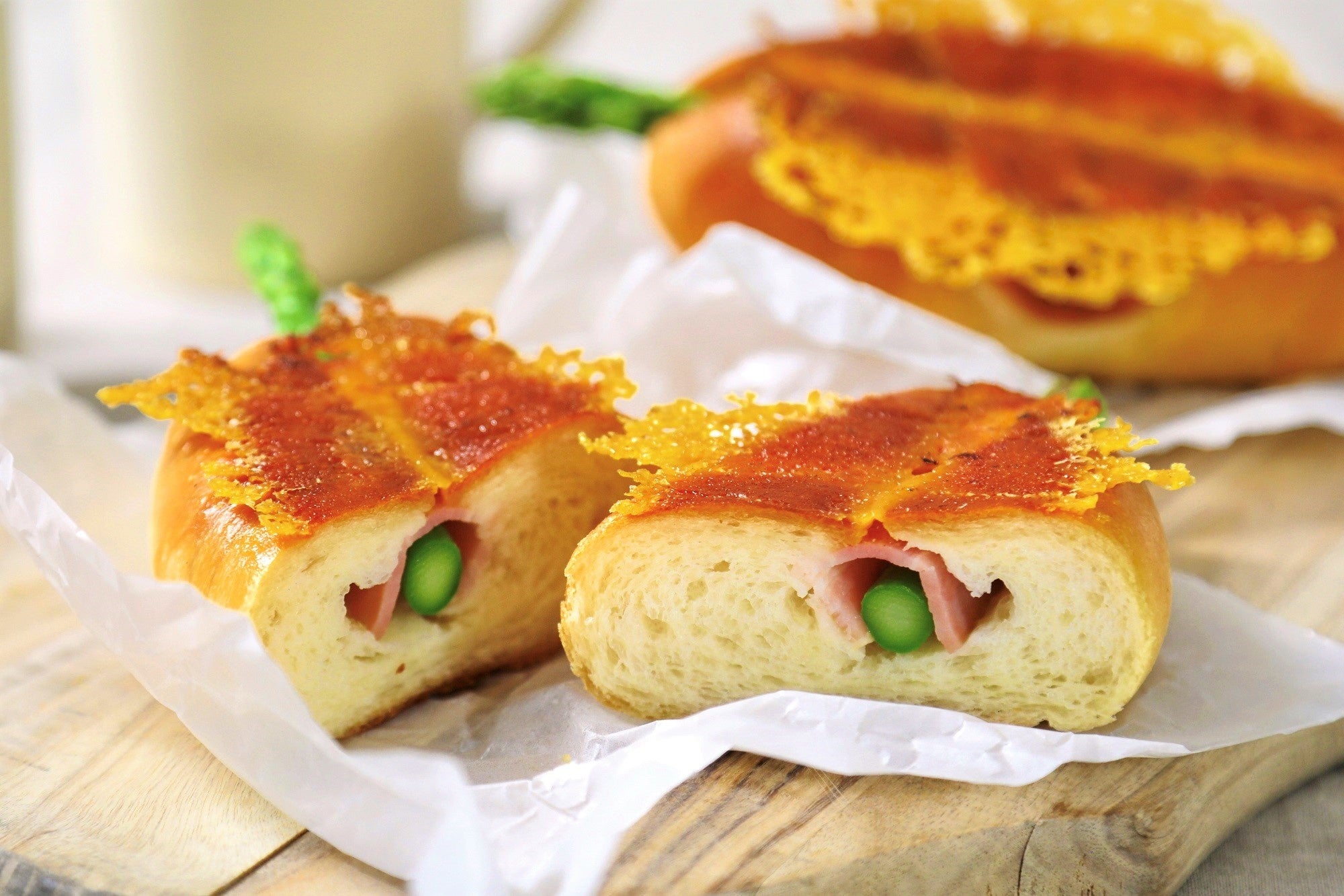 もっちり食感のパンと、フレッシュなアスパラ、パリッと焼き上げたチーズの食感の違いもあわせてお楽しみください。