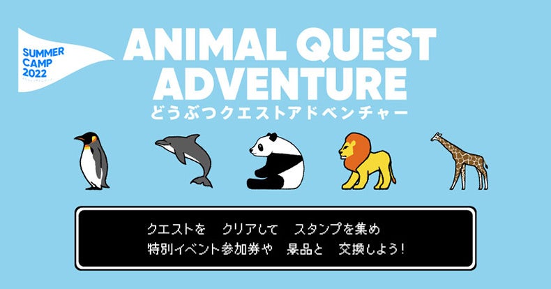 アドベンチャーワールド(和歌⼭県⽩浜町)は、2022年7月16日(土)〜8月30日(火)の期間、動物たちと一緒に楽しみながら体験し、学ぶイベント『SUMMER CAMP2022』を開催します。開催期間中、お手持ちのスマートフォンでご参加いただける特別イベント「どうぶつクエストアドベンチャー」を実施いたします。春の特別開催「SPRING FES2022」でも実施した本イベントが、クエストや特別イベントのバリエーションをさらに増やして帰ってきました!