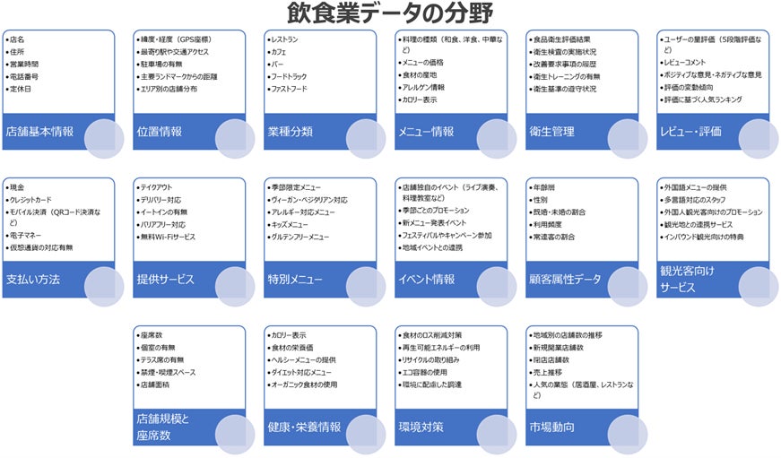 飲食店分野に関連するオープンデータが多様に存在し、それぞれの情報は消費者や店舗経営者、地域経済に役立つ資源となります。