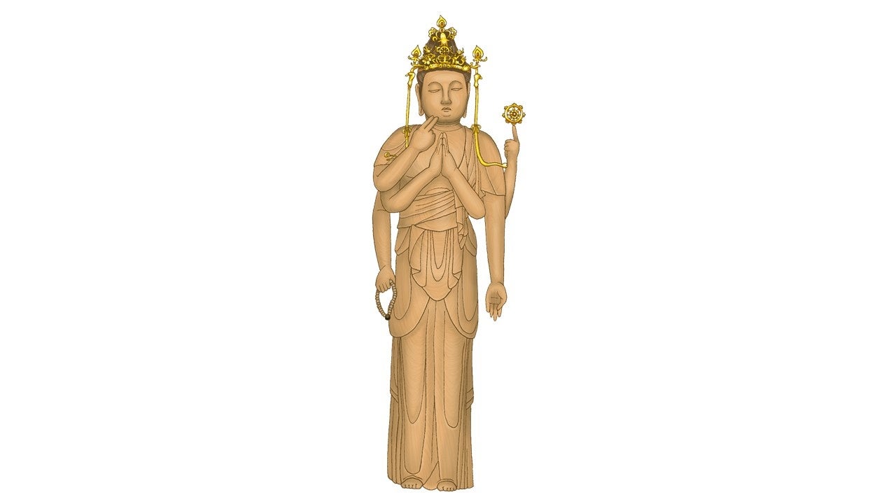珍しい立像の如意輪観音は、思いが叶う観音様として篤い信仰を集めています。