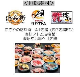 ステーキ宮・カルビ大将・味のがんこ炎・にぎりの徳兵衛・海鮮アトム・海へ・