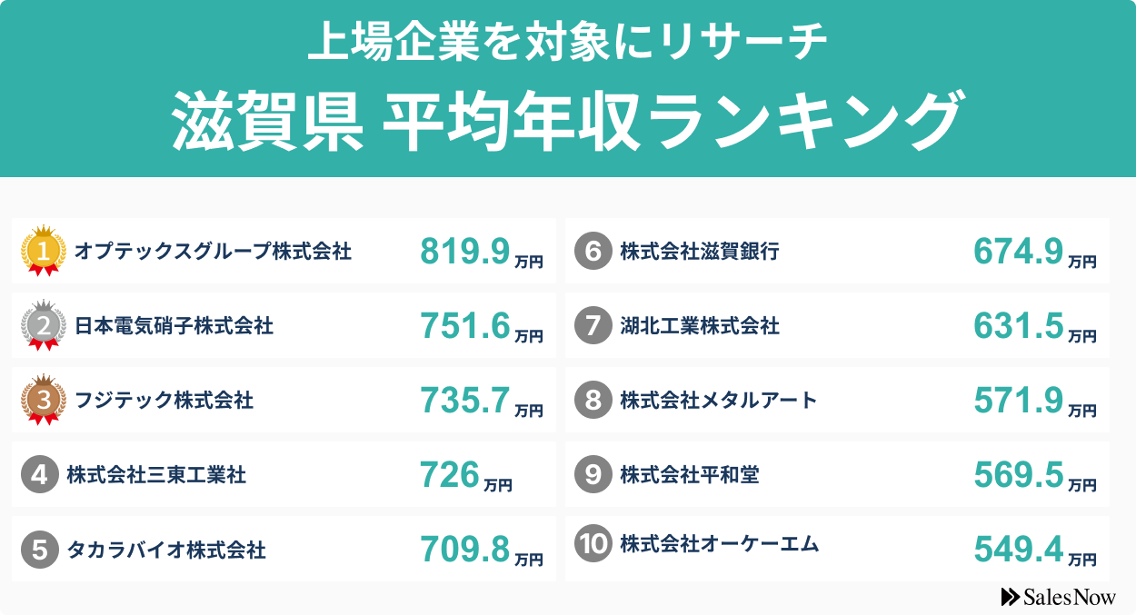 【滋賀県】上場企業平均年収ランキングTOP10!/SalesNow DBレポート