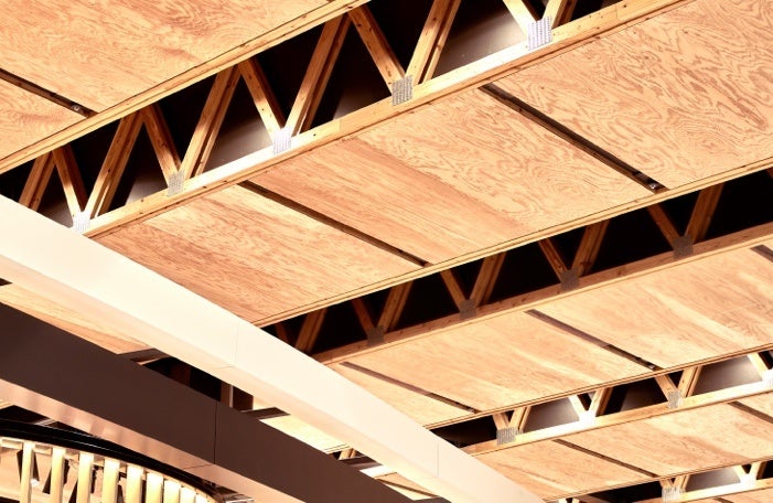 小川:3階の搭乗待合エリアの地元・小国杉の板材を使った天井です。木造トラスの梁と鉄骨の柱を組み合わせたハイブリッド構造となっており、注目していただきたいポイントです。また、東京オリンピックのベンチとして使われた熊本産の木材が、また地元に戻ってきて化粧材として活用されています。それから「肥後漆喰」といって、熊本城の漆喰壁にも使われている伝統的な塗り壁材も使われています。この肥後漆喰は、貝殻を主原料として作られるものです。石灰岩を使う一般的な漆喰と違い、本来であれば捨てられてしまうものを資源として有効活用していて、環境保全にもつながる塗り壁材といえます。その他、三井不動産の「経年優化」の概念のもとで随所に工夫が施された建物なので、ぜひ現地で見てみてください。
