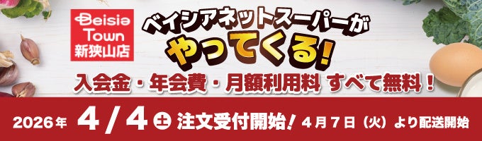 株式会社ベイシア(本社:群馬県前橋市、代表取締役社長:相木孝仁)は、楽天グループ株式会社(以下「楽天」)が提供するネットスーパーのプラットフォーム「楽天全国スーパー」内に出店する「ベイシアネットスーパー」において、3月25日に開業した新フォーマット1号店となる「Beisia Town 新狭山店」からの配送を2026年4月7日(火)より開始いたします。