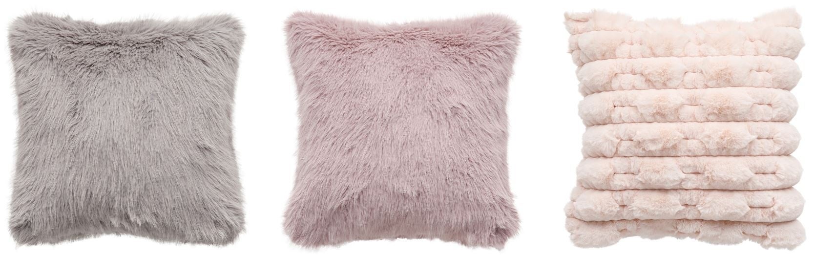 左から クッションカバー(ロングファーGY SC177) 商品コード5785521 価格1,490円