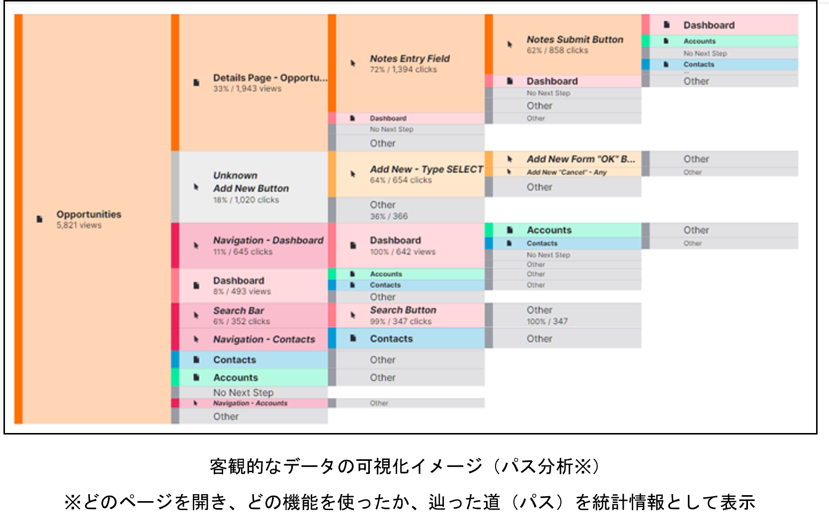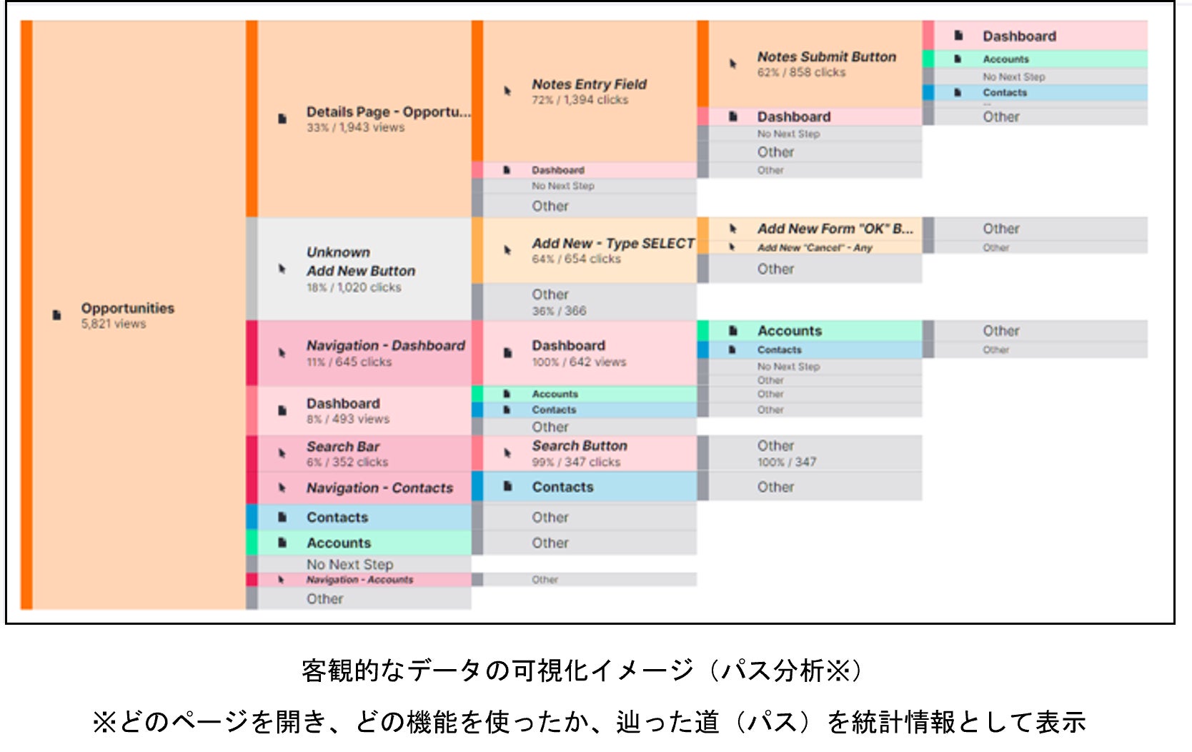 これにより、これまで社員が迷うことで長期化する特定画面の滞在時間を約30%、特定のエラーメッセージの表示を約50%削減することに寄与することが確認できました。さらに、このような状況を客観的にデータで可視化することでボトルネックを明確化し、プロセス全体の改善にも活用しています。