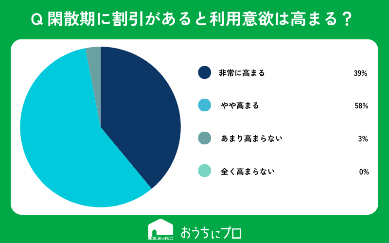 エアコンクリーニングの閑散期に割引があると9割近くのユーザーの予約への意欲を喚起する。