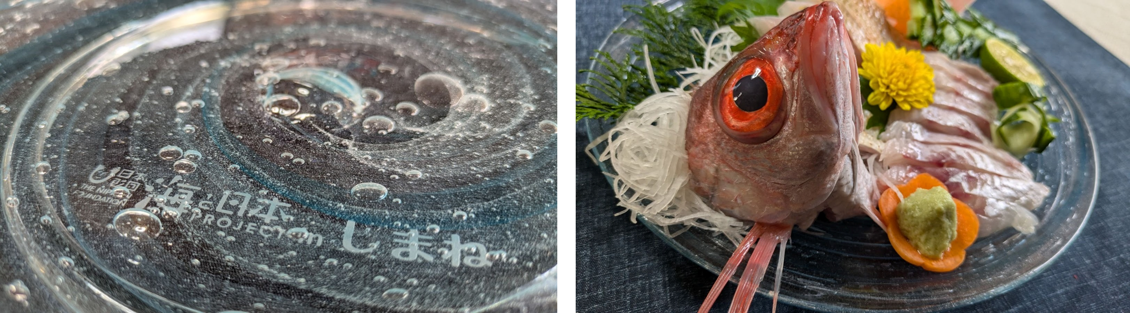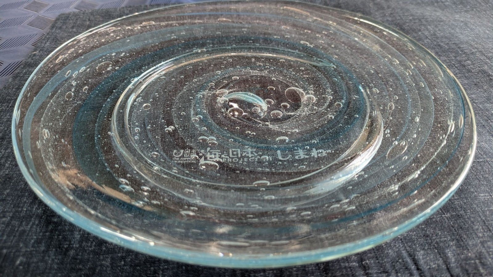一般社団法人 海と日本プロジェクトinしまねは、ガラス工房IZUMO(島根県出雲市)の作家・川辺 雅規(かわなべ まさき)氏とコラボし、島根の海をイメージしたガラスの器「海のうつわ」を製作しました。「海のうつわ」は、“海を感じる”をテーマに、日本海の美しい波や水の流れをガラスで表現。透明感と揺らぎで海の静けさや力強さを映し、日々の食卓に自然の息遣いを届けるような大皿です。