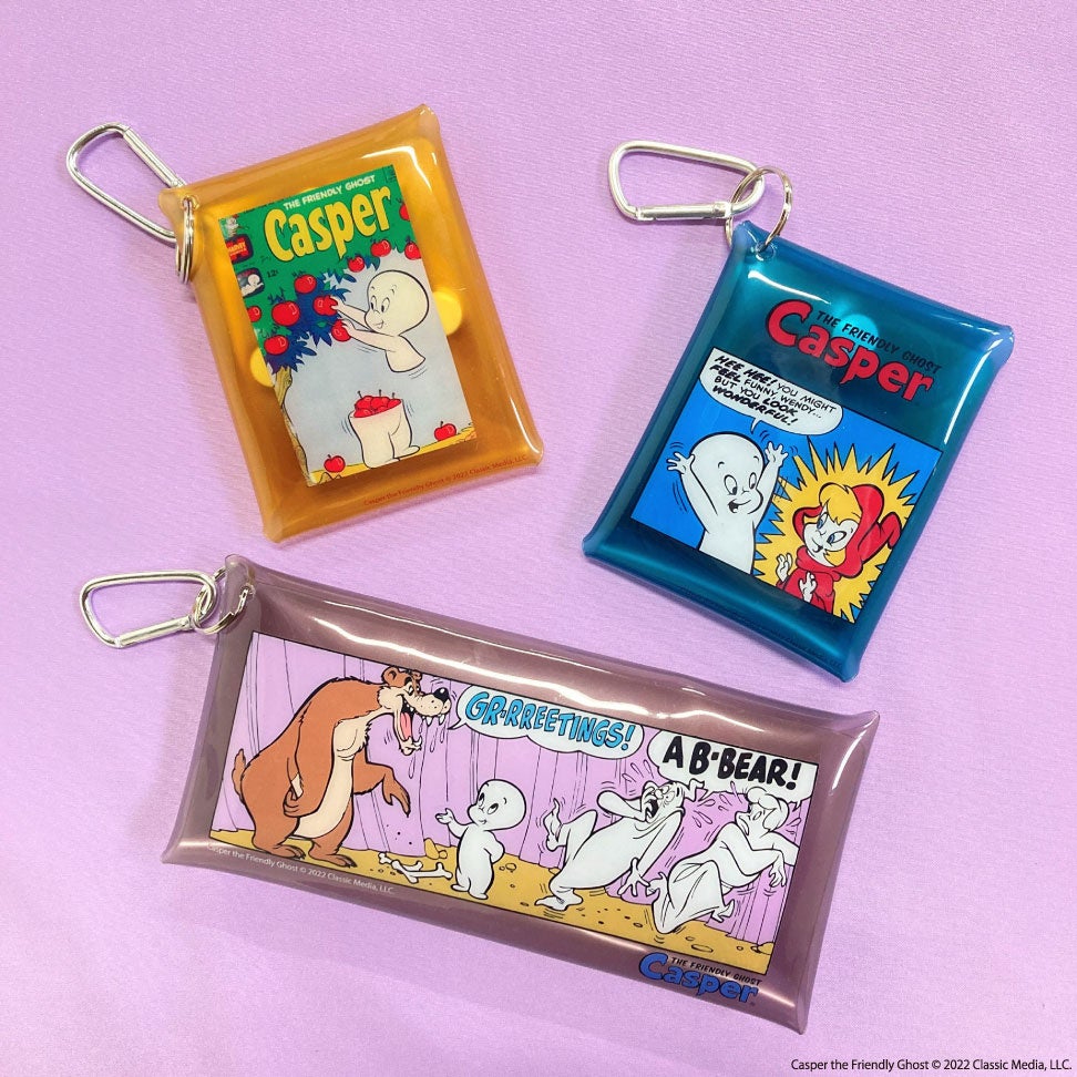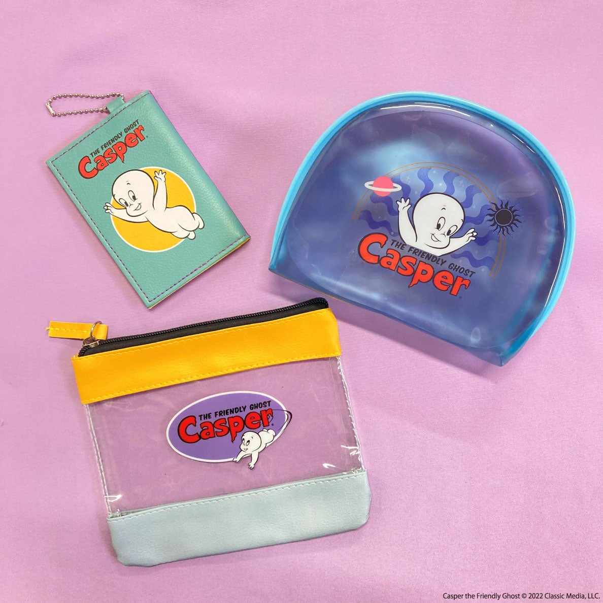 大人気のクリア素材アイテムも登場。クリアポーチは「キャスパー」のフェイス型でコワかわいいお化けっぽさがそのまま表現されています。