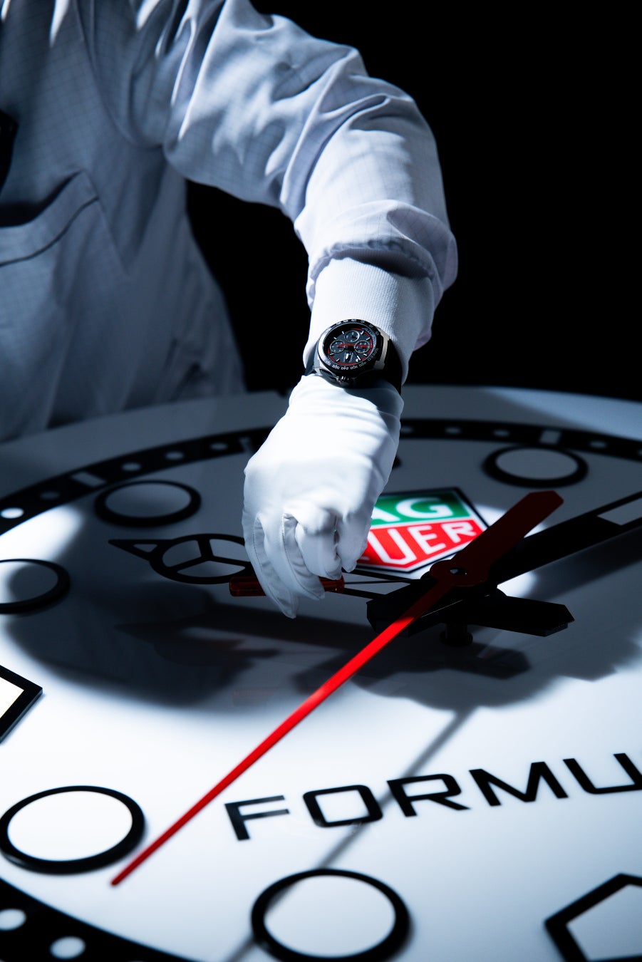 オーストラリアGPでのタグ・ホイヤーの存在を決定づける要素のひとつが、F1のためだけに特別に用意された専用のピットレーンクロックです。デザインは1986年に発表された「タグ・ホイヤー フォーミュラ1」コレクションから着想を得ていますが、このクロックの直径はなんと1200mm。グラスファイバー製ベゼル、超軽量のプレキシガラス製ダイヤル、最適な可読性を実現するアルミニウム製針など、高性能素材が使用されています。視認性に優れるLED表示により、日差しがまぶしい日中でも、雨天時でも、ナイトレースの照明下でも、常に時刻をはっきりと読み取れます。