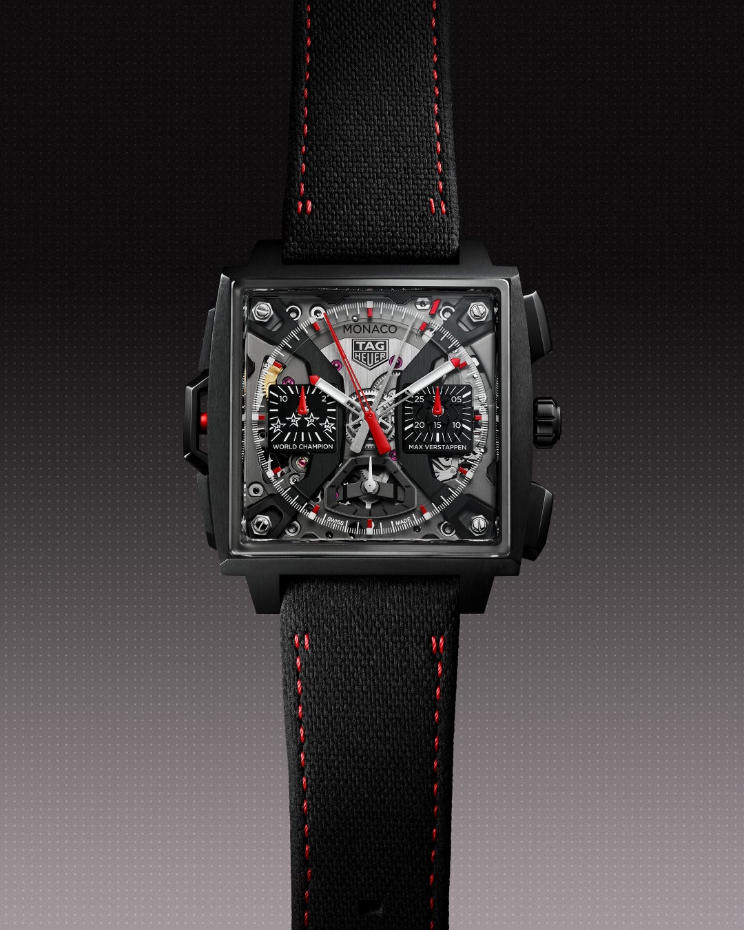 このパートナーシップの要となるのが、マックス・フェルスタッペン。オラクル・レッドブル・レーシングとタグ・ホイヤーが共に標榜する、高精度、不屈の精神、たゆまぬ努力を体現するドライバーです。メルボルンのサーキットに挑むフェルスタッペンが着用するのが、彼仕様にカスタマイズされた「タグ・ホイヤー モナコ スプリットセコンド クロノグラフ」。彼がF1で圧倒的な強さを誇っていることを反映してデザインされたタイムピースです。そのダイヤルが物語るのは、フェルスタッペンのサクセスストーリー。1つ目のサブダイヤルには、4つの星と彼がタイトルを獲得した年が記され、その下には彼がF1の頂点を極めた証である“World Champion”が刻まれています。2つ目のサブダイヤルには、フェルスタッペンの強さを象徴する“ライオン”のエンブレムと彼の名が刻印され、1時位置の数字の“1”は、彼が昨年のF1チャンピオンであることを高らかに主張しています。
